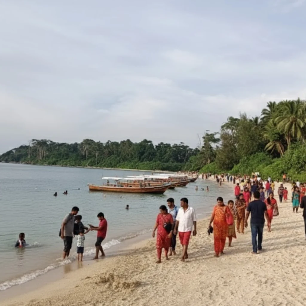 The beach’s location on Port Blair’s east coast offers protected conditions and calm waters suitable for various recreational activities and family outings.
